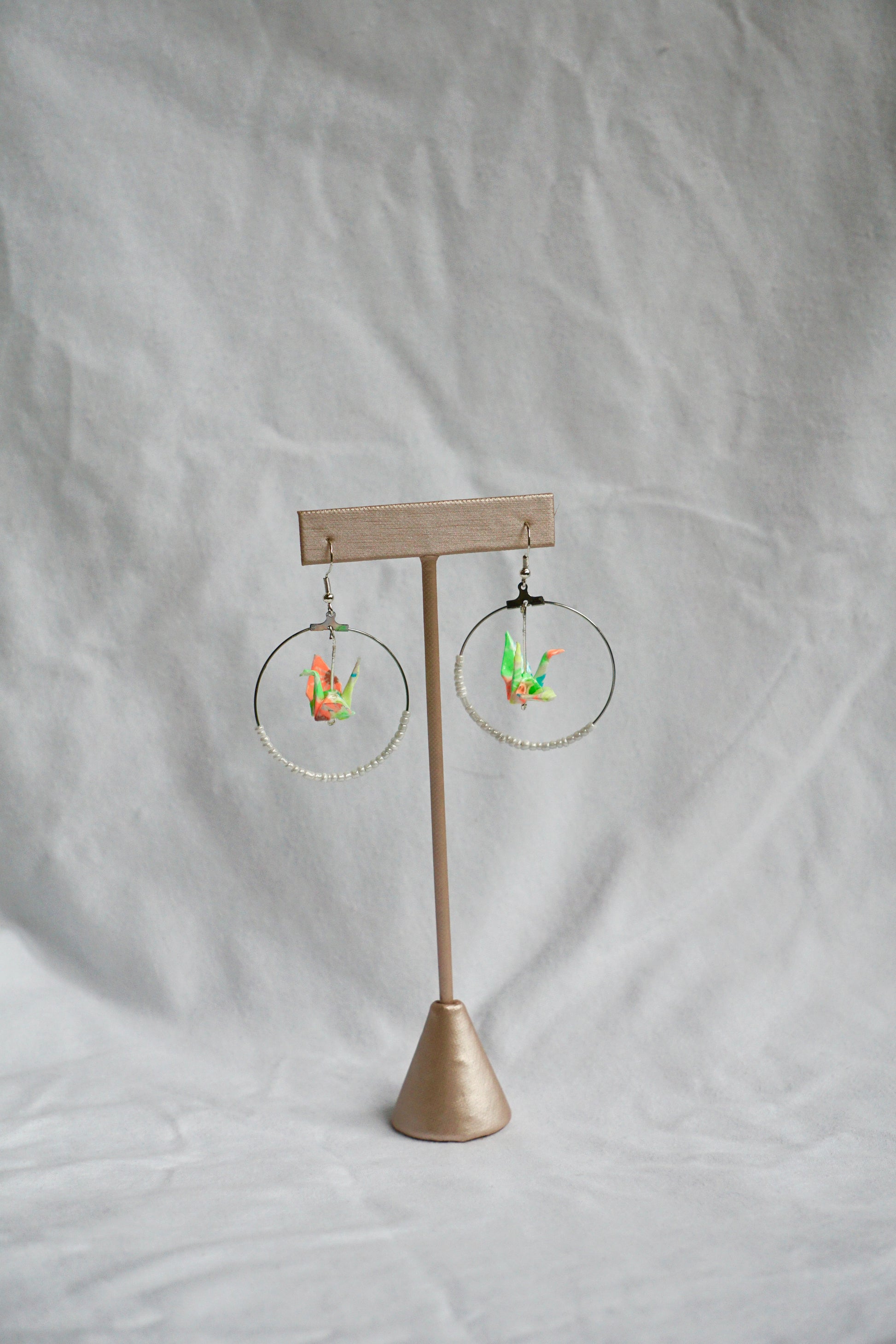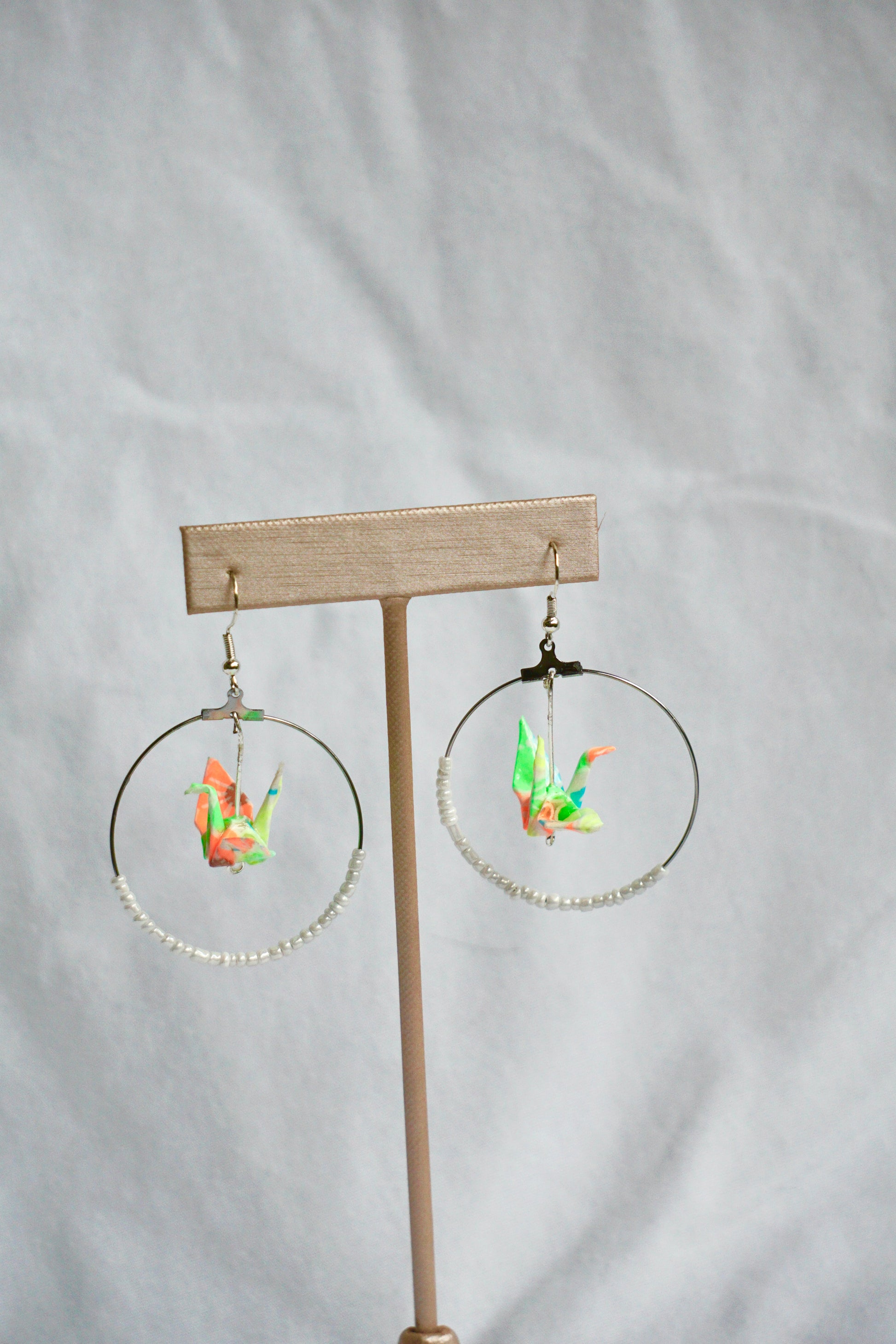 A spin on the crowd favorite - bright neon colored crane hoop earrings to compliment that new spring 'fit you've been excited to wear!